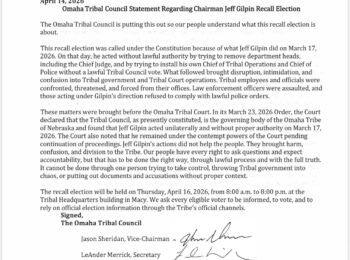 Omaha Tribe Eligible Voters List Updated April 12, 2026