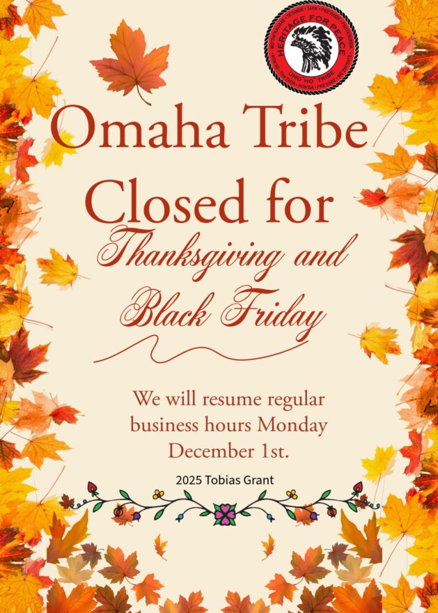 The Omaha Tribe will be closed Thursday, November 28th and Friday, November 29th. We will resume regular business hours on Monday, December 1.