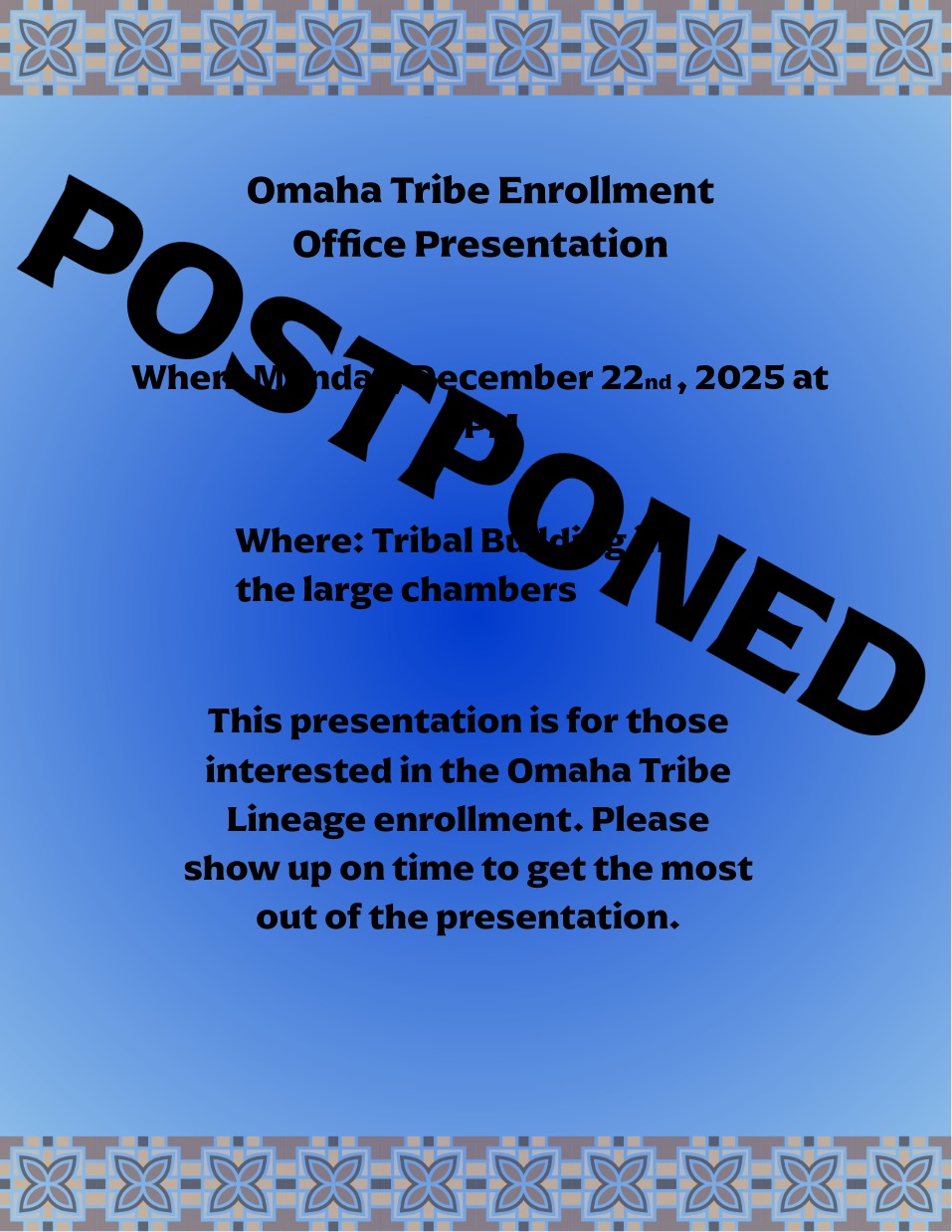 The Omaha Tribe will be closed on January 23, 2026 due to inclement weather.